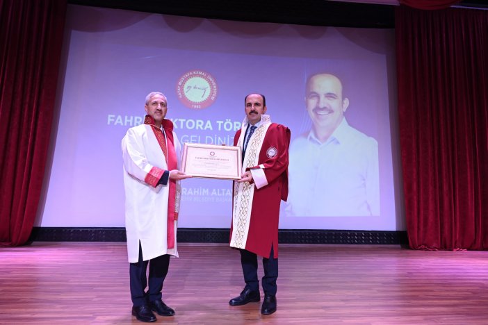 Hatay Mustafa Kemal Üniversitesi Senatosu’nun aldığı kararla Siyaset Bilimi ve Kamu Yönetimi alanında Fahri Doktora ünvanı takdim edildi.