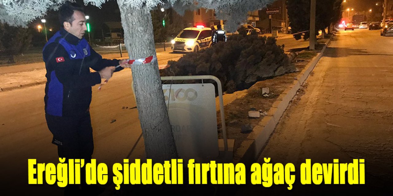 Ereğli’de şiddetli rüzgar ağaçları devirdi