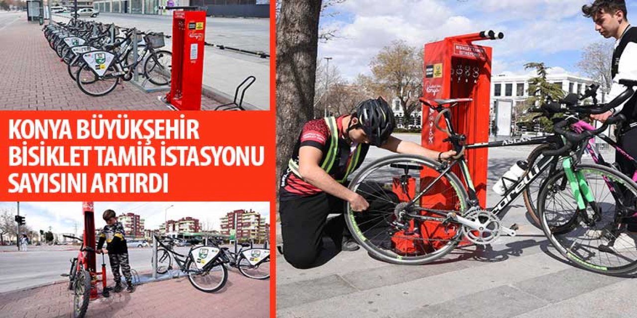 Konya Büyükşehir Belediyesi’nin bisikletlerin tamir edilmesi için kurduğu tamir istasyonları, bisiklet kullanıcılarına büyük kolaylık sağlıyor.