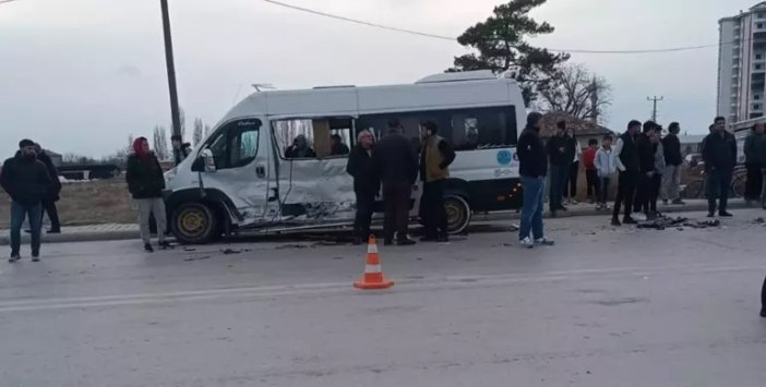 Konya’nın Ereğli ilçesinde okul servis minibüsü ile kamyonetin çarpıştığı kazada 7’si öğrenci 11 kişi yaralandı.