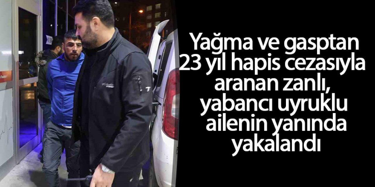 Yağma ve gasptan 23 yıl hapis cezasıyla aranan zanlı, yabancı uyruklu ailenin yanında yakalandı
